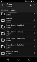 Меню для видео-файла доступно по длинному тапу на нем или по клику на 3 точках справа от файла (доступные опции: выбор качества видео, описание серий и скачивание видео).