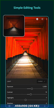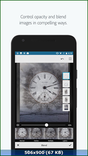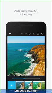 Adobe Photoshop Express – редактировать фотографии ещё никогда не было так просто и весело. Выберете один из множества фильтров, дабы сделать фотографию именно такой, какой вы хотели бы её видеть. С данной программой это просто, и весело. Данное приложение, подойдет и для любителей и для профессионалов. Ведь только здесь вы можете редактировать вашу фотографию до мелочей, или же выбрать один из готовых вариантов, что бы сделать цвета и качество фото более насыщенным. Сделайте свои фото ярче, с простым и качественным приложением.