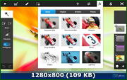 - Краска — повысьте точность создаваемых эффектов с помощью пипетки, позволяющей выбирать цвета, а также с помощью настраиваемой кисти и ластика.
