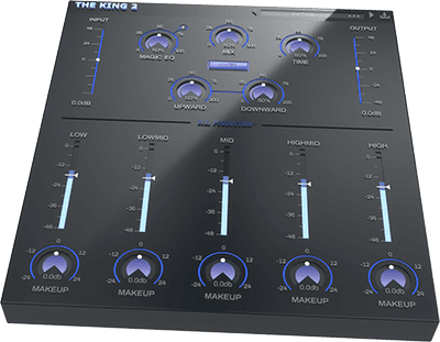 King 2 - обновленная версия плагина для мастеринга, объединяющая динамический усилитель и многополосный компрессор, который позволяет контролировать 5 диапазонов частот: Low, Low Mid, Mid, High Mid и High.