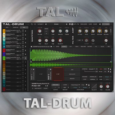 TAL-Drum - это простой в использовании сэмплер для барабанов, коротких сэмплов и лупов, вдохновленный барабанными сэмплерами 80-х годов с современным рабочим процессом.