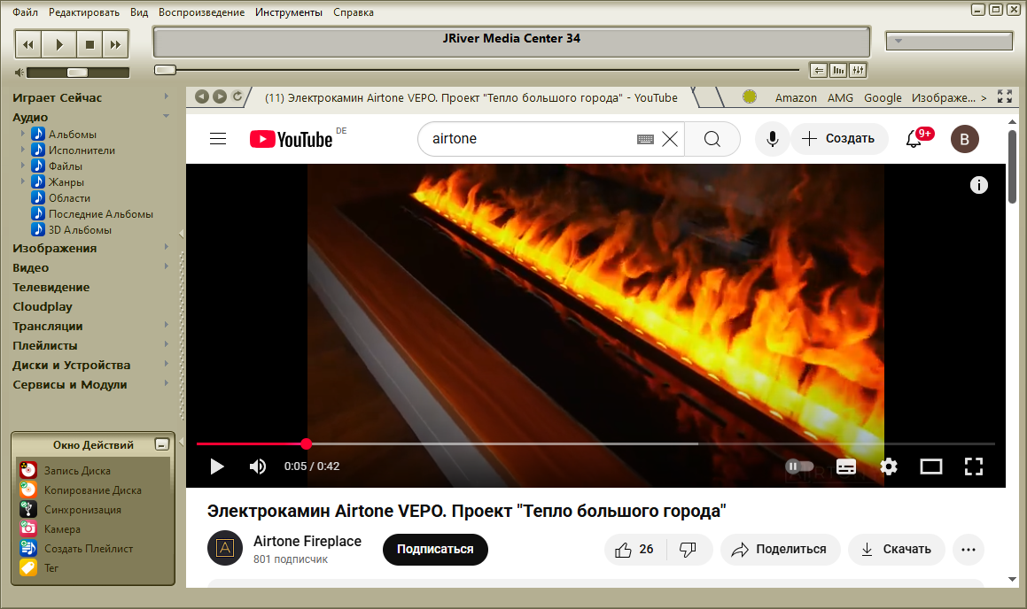 JRiver Media Center — мощный мультимедийный центр, объединяющий в себе работу с музыкой, видео и фотографиями. Проигрывает большинство популярных аудио и видео форматов, включая MP3, аудио CD (поддерживает CDDB) и DVD, может преобразовывать CD-аудиотреки в WAV и MP3, переписывать на жесткий диск виниловые диски и кассеты (убирая при этом помехи и шумы), а также создавать аудио-CD, причем для всех этих функций программа имеет множество настраиваемых параметров.