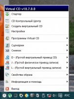 Еще одно применение нескольких виртуальных CD-драйвов - установка в них наиболее часто используемых образов компакт-дисков на постоянной основе (в этом случае не нужно будет сначала "вставлять" их в виртуальный CD-драйв, а уж только потом пользоваться). Программа умеет работать с Data / Audio / mixedmode CD, DVD-ROM, non-CSS DVD-Video, Photo-CD и CD-Text. При создании образов компакт-дисков записывать их на жесткий диск можно как в нормальном режиме, так и со сжатием (к примеру, data-диск может быть сжат с 650 MB до 135 МБ), возможно установление пароля для созданного виртуального компакт-диска и использование созданных виртуальных компакт-дисков в локальной сети. При необходимости Virtual CD подключается к интернету и загружает информацию об аудио-CD из CDDB.
