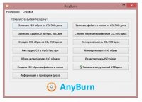 AnyBurn - простая в использовании программа для записи дисков. Обладает удобным, интуитивно понятным интерфейсом. Поддерживает все типы CD/DVD/Blu-ray дисков. В этой программе есть инструменты для записи обычных дисков с данными, аудио дисков и ISO образов. С ее помощью можно создавать копии дисков, копировать музыку с аудио дисков и сохранять ее в формате MP3, FLAC, APE и WMA. Кроме этого, AnyBurn позволяет конвертировать образы дисков из одного формата в другой.