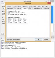 DVD Decrypter никогда не позиционировался как "средство для резервного копирования": автор программы, хранящий инкогнито под именем LIGHTNING UK!, не скрывает, что утилита расчитана в первую очередь на полное снятие всех видов защит с оригинальных DVD-дисков и риппинг их содержимого на жесткий диск. Поэтому DVD Decrypter подходит как для записи "штампованных" DVD-дисков на записываемые носители, так и для последующего перевода в другие форматы. Хотя встроенных средств для перекодировки фильмов в программе нет, многие популярные оболочки предлагают использовать для риппинга именно её. А вот создавать ISO-образы дисков и записывать с них болванки можно напрямую из DVD Decrypter: утилита поддерживает практически все существующие форматы DVD (DVD-R, DVD+R, DVD-RAM и т.д.) и конечно же СD.