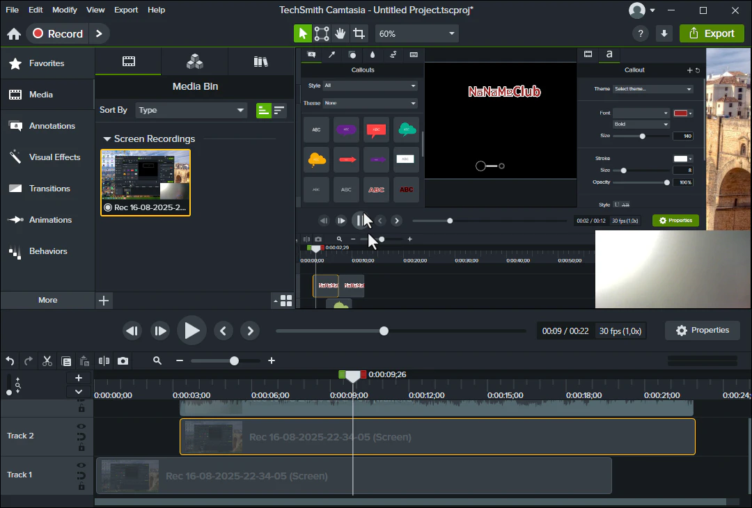 Сделанное при помощи программы видео можно экспортировать в один из поддерживаемых программой форматов - AVI, SWF, FLV, MOV, WMV, RM, GIF, CAMV. Кроме того, на основе любого видео может быть скомпилирован исполнительный exe-файл, который будет содержать встроенный проигрыватель. Camtasia Studio позволяет накладывать ряд эффектов, умеет работать с отдельными кадрами, облегчает запись, редактирование и публикование высокоточного, сжатого видео для тренировки, образования, дистанционного обучения, решений технической поддержки, демонстраций продукта, торговых презентаций и т.д.