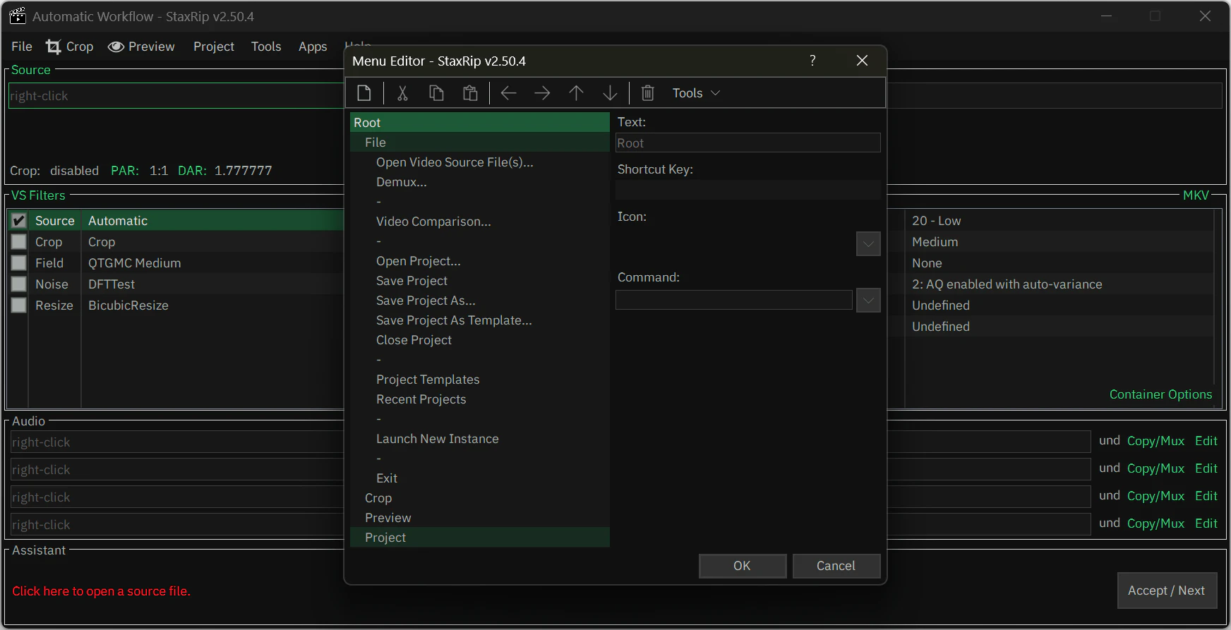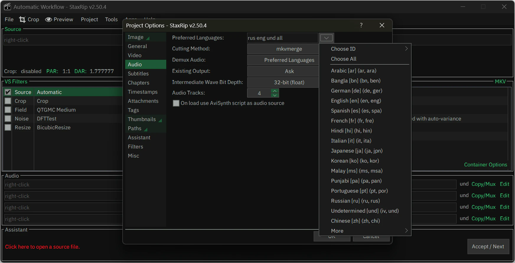 StaxRip - инструмент для кодирования видео "все-в-одном", который предназначен для преобразования Blu-ray/DVD/DVB и других видеоформатов в DivX, XviD, H.265, H.264. Поддерживает различные видеформаты (XviD, x264/H264/AVC, x265/H265/HEVC, VP9, AVI, MP4, MKV, WEBM) и аудиоформаты (MP3, AC3, MP2/MPA, AAC, DTS, WAV).