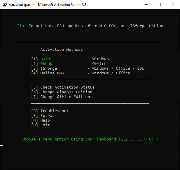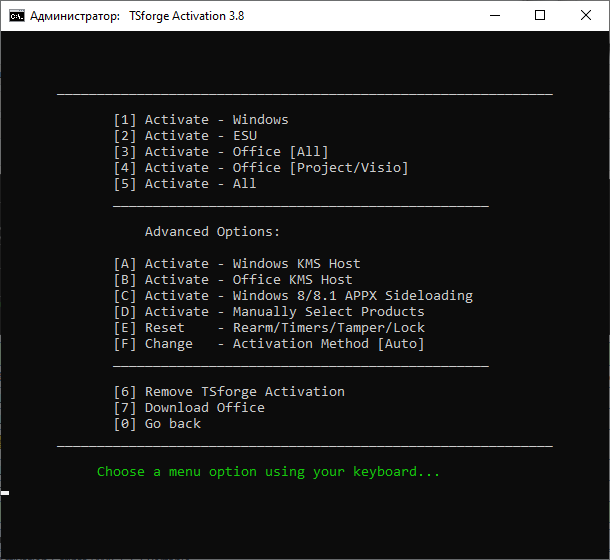 Активатор Windows и Office с использованием методов активации HWID/Ohook/OnlineKMS/TSforge с упором на открытый исходный код и меньшее количество обнаружений антивируса.