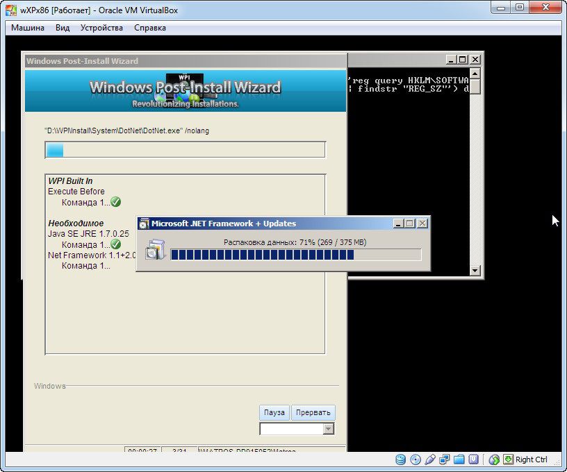 При первом входе в систему появится окно WPI...,отмечайте нужные программы и устанавливайте - появится окно установщика и ещё одно консольное окно - ничего не трогайте и не закрывайте ,дождитесь окончания инсталляций ,далее будет автоматическая перезагрузка.Состав WPI на скриншоте.Программы подбирались так,чтобы установить все(дублирующих,одинаковых по функционалу нет),поэтому,отмечайте всё ,(но это моё мнение ,а там, как Вам удобно...)