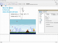 Кроме того, у программы богатые возможности работы с функциями (построение графиков, вычисление корней, экстремумов, интегралов и т.д.) за счёт команд встроенного языка (который, кстати, позволяет управлять и геометрическими построениями). В отличии от других программ для динамического манипулирования геометрическими обьектами, идея GeoGebra заключается в интерактивном сочетании геометрического, алгебраического и числового представления. Вы можете создавать конструкции с точками, векторами, линиями, коническими сечениями, а также математическими функциями, а затем динамически изменять их.