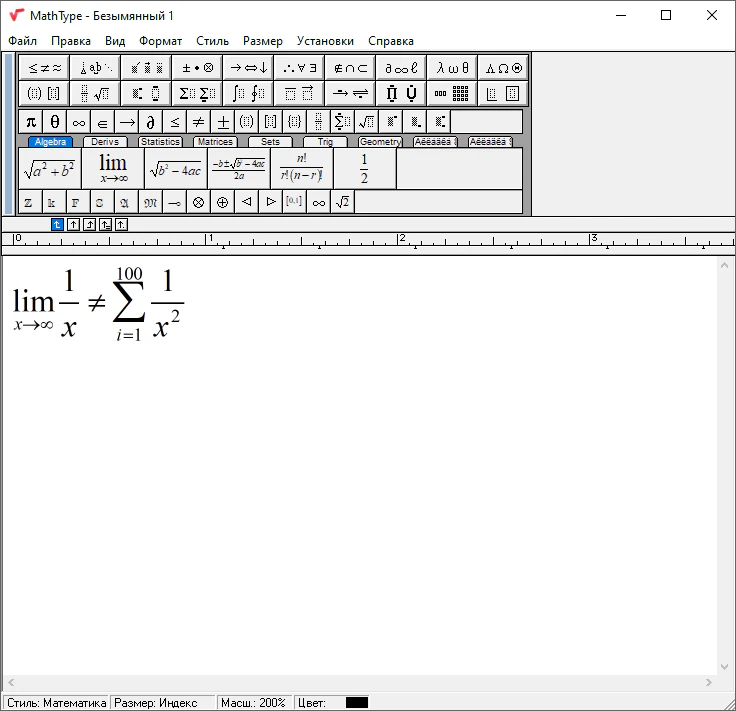 — MathType содержит сотни математических и технических символов и шаблонов, которых в таком количестве нет ни в одном другом редакторе.