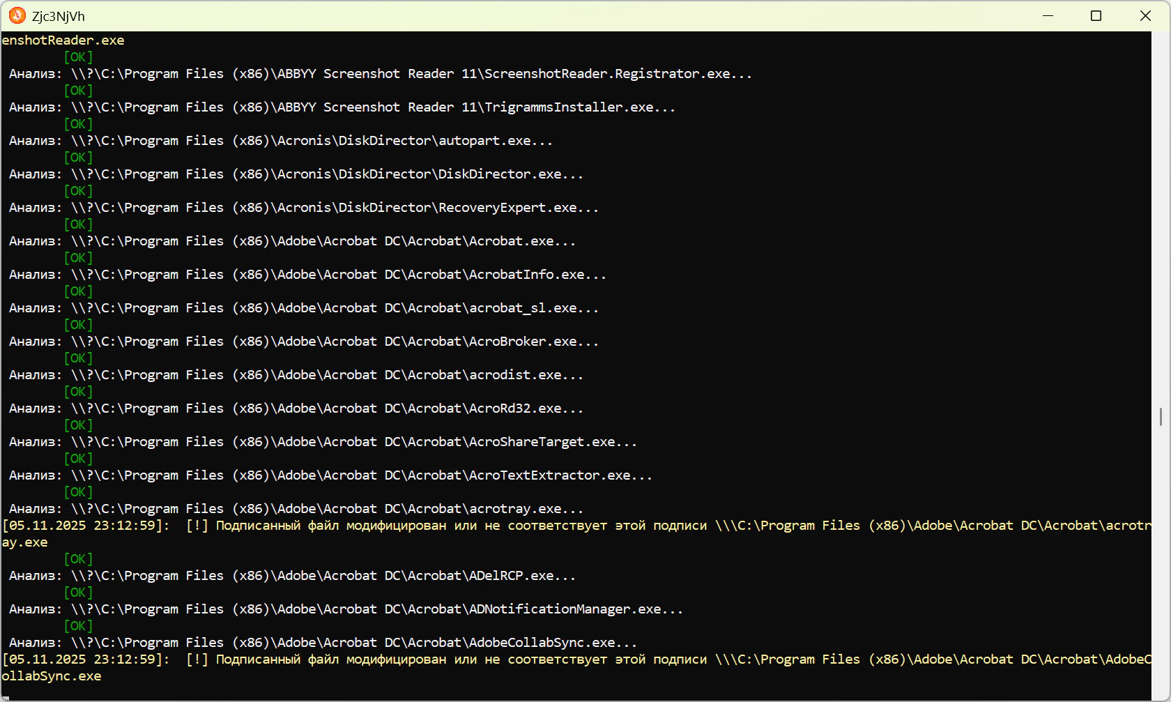 - Корректное отображение результата проверки подписи в планировщике задач при запуске утилиты с наивысшими привилегиями