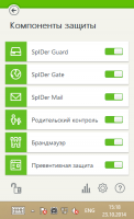 - SpIDer Guard – антивирусный сторож, который постоянно находится в оперативной памяти, осуществляя проверку файлов и памяти «на лету», а также обнаруживая проявления вирусной активности;