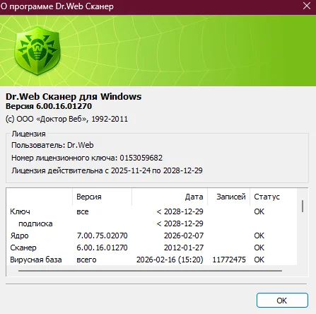 Официальный сайт: www.drweb.ruЯзык интерфейса: Русский