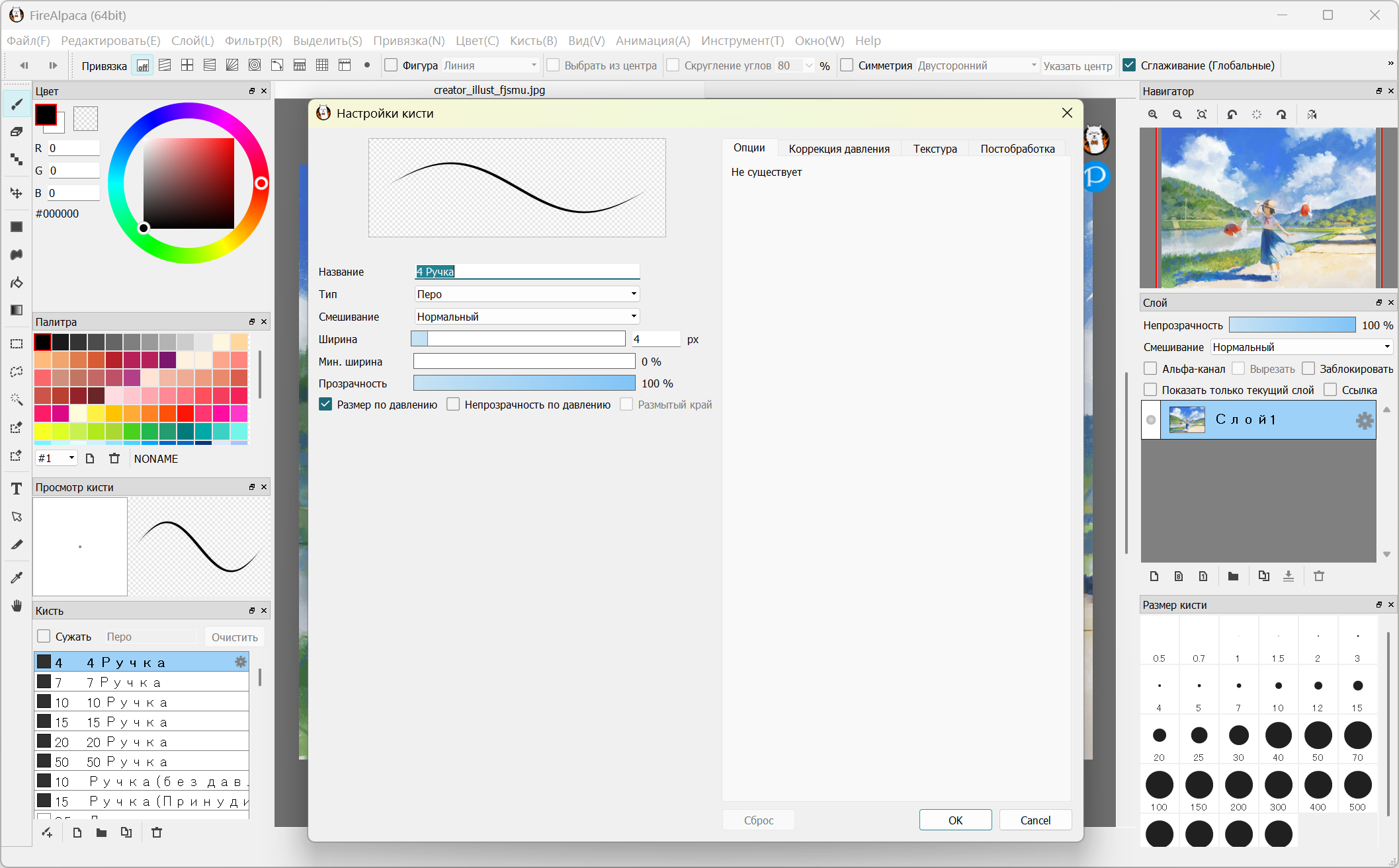 Описание:FireAlpaca — это достаточно простой, но удобный графический редактор для преобразования изображений, фотографий и любых других картинок. Здесь нет каких-то продвинутых или специфических функций, но базовый набор инструментов позволяет быстро и легко редактировать нужные изображения.