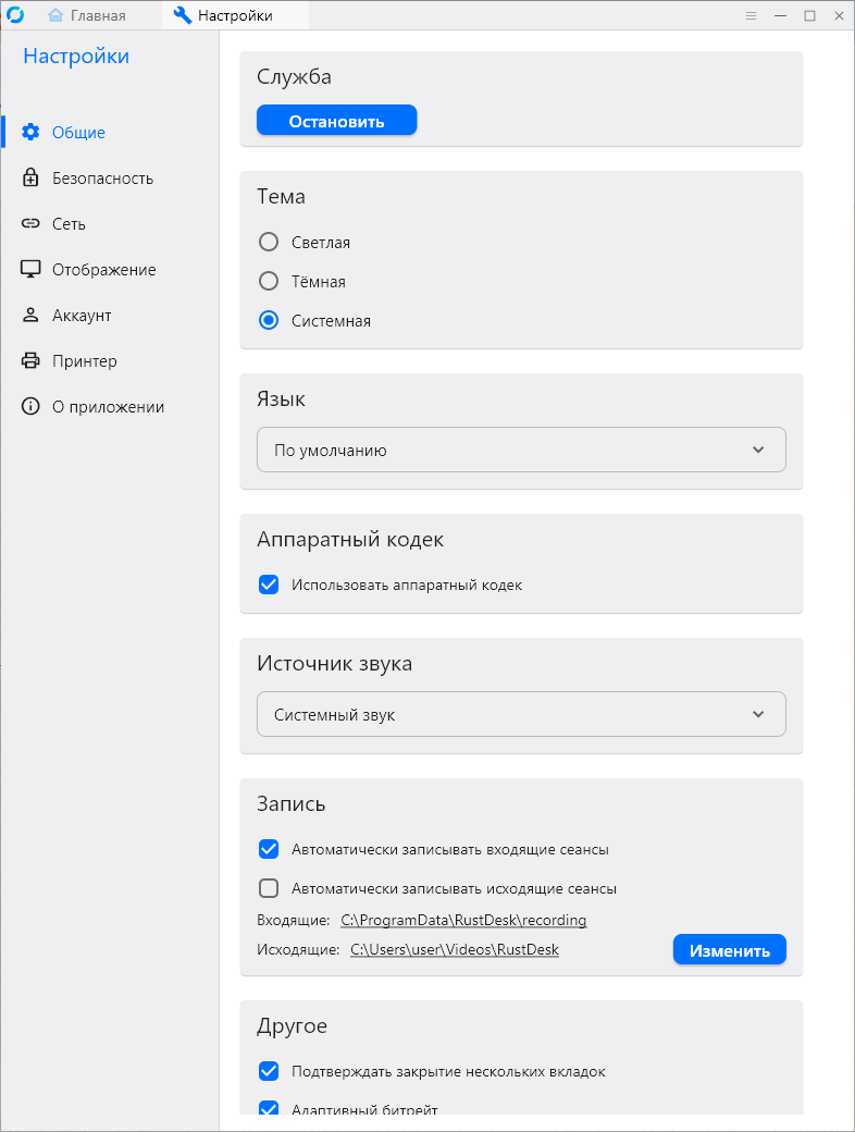 - RustDesk функционирует как сервер и клиент, используемый как удаленно, так и на локальном ПК. Для доступа к удаленному компьютеры или мобильному устройству используется идентификатор (ID) и пароль устройства. При необходимости пользователи могут изменить данные доступа.