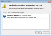 1) Откройте Папку Language Packs (Находится по пути ...\Cyberfox 33.0.1 + Portable\). Щёлкните кнопкой мыши по нужному языковому пакету для его установки. При появлении панели запроса на установку программного обеспечения с сайта нажмите на кнопку «Allow».
