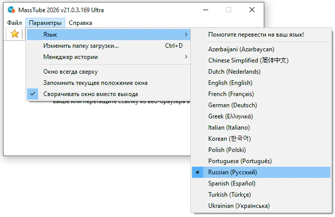 Официальный сайт: MassTubeЯзык интерфейса: Русский, Английский и другие