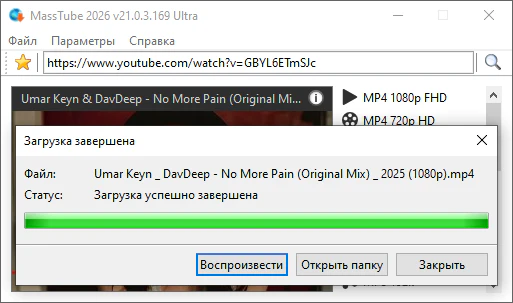 Описание:MassTube — очень простая в использовании программа для скачивания видео с YouTube (и не только) с помощью одного клика. Достаточно в строку поиска вставить адрес понравившегося ролика и нажать поиск, после чего программа предоставит список форматов и разрешений, в которых можно быстро скачать данный клип.