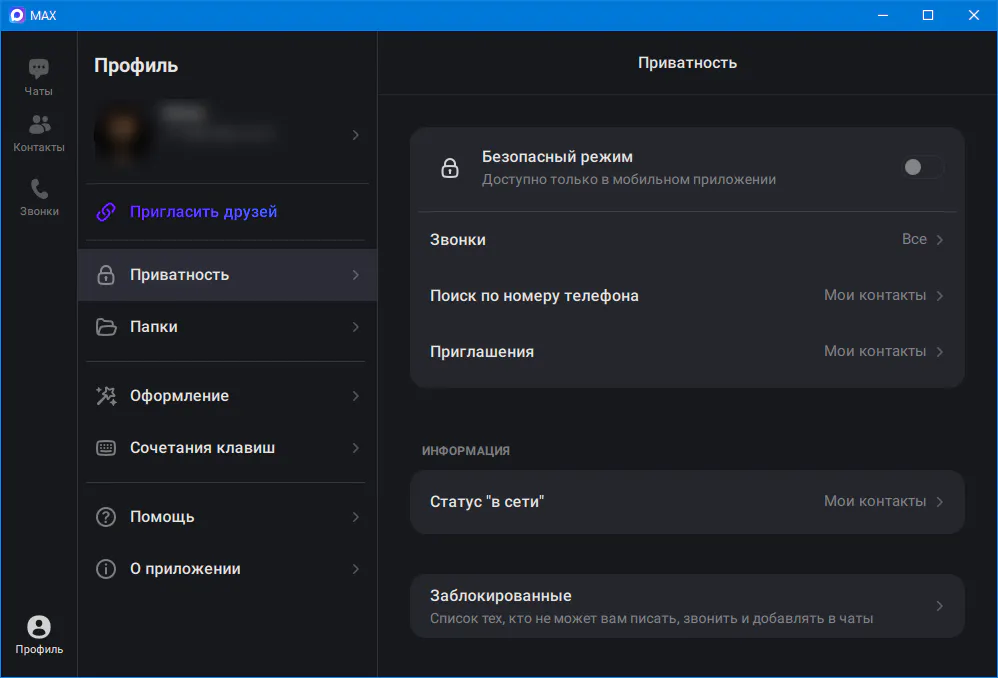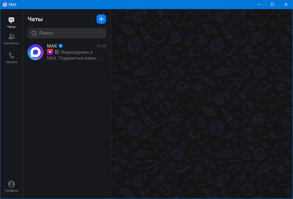 Windows 10 (1809) и выше Описание:Быстрое и лёгкое приложение для общения и решения повседневных задач. Общайтесь в удовольствие благодаря высокому качеству связи и быстрому соединению даже в сетях со слабым сигналом. Анимированные стикеры, реакции в чатах, возможность отправки файлов до 4 ГБ – все необходимое для того, чтобы делиться настроением и важной информацией. В MAX можно войти сразу с нескольких устройств, используя свой основной номер мобильного телефона. Чаты и звонки будут синхронизироваться между устройствами. Доступна