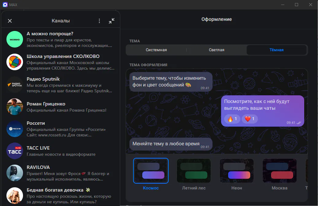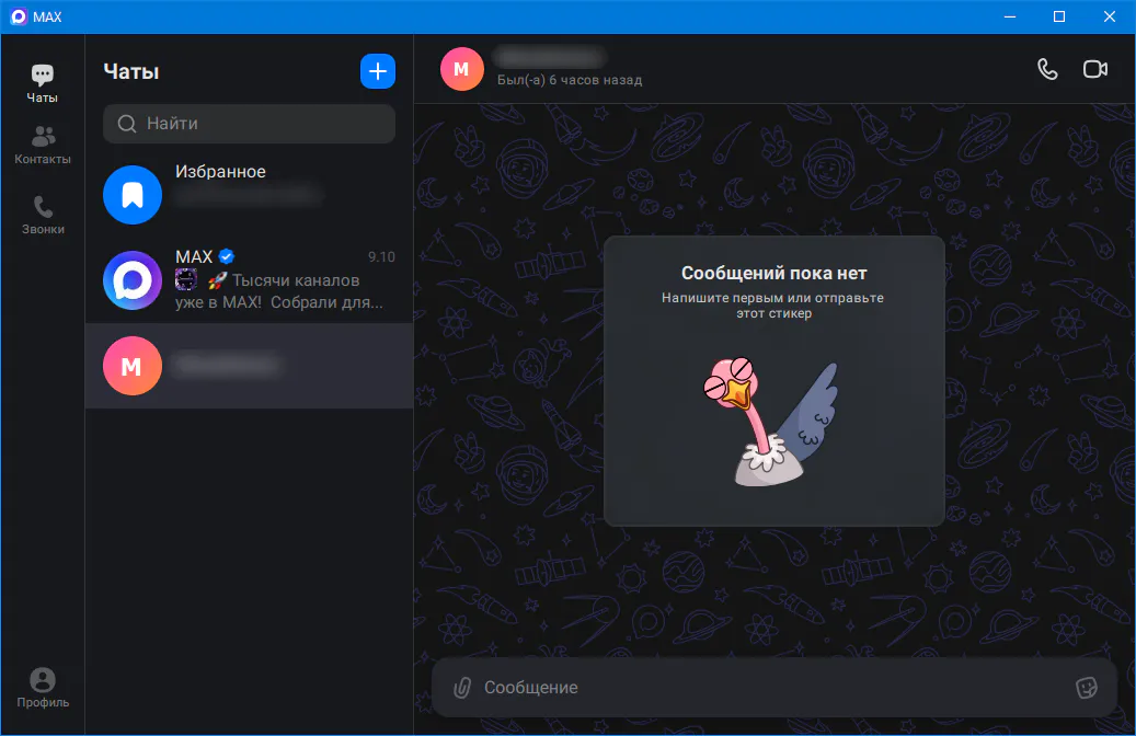 Windows 10 (1809) и выше Описание:Быстрое и лёгкое приложение для общения и решения повседневных задач. Общайтесь в удовольствие благодаря высокому качеству связи и быстрому соединению даже в сетях со слабым сигналом. Анимированные стикеры, реакции в чатах, возможность отправки файлов до 4 ГБ – все необходимое для того, чтобы делиться настроением и важной информацией. В MAX можно войти сразу с нескольких устройств, используя свой основной номер мобильного телефона. Чаты и звонки будут синхронизироваться между устройствами. Доступна