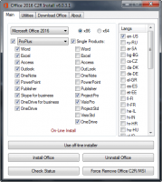 Office 2013-2016 Install - программа для онлайн установки Microsoft Office 2016 или Microsoft Office 2013 на ваш ПК. Преимуществом программы есть возможность установки отдельных компонентов офис 2016, а так же выбора языка устанавливаемого офисного пакета.