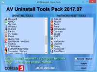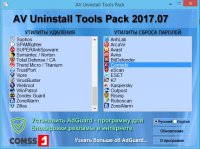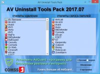 AV Uninstall Tools Pack - это бесплатный пакет утилит, предназначенных для удаления различных антивирусных программ. В него входят утилиты для удаления более 40 антивирусных и антишпионских программ, а также сетевых экранов. Они необходимы в тех случаях, когда не удаётся полностью удалить антивирусную программу стандартным путём, или в процессе удаления возникают ошибки. Данные утилиты полностью удаляют все файлы, драйвера, службы и записи реестра, оставленные антивирусными программами. Эти утилиты окажутся полезны для тех, кто часто занимается переустановкой и настройкой программного обеспечения.