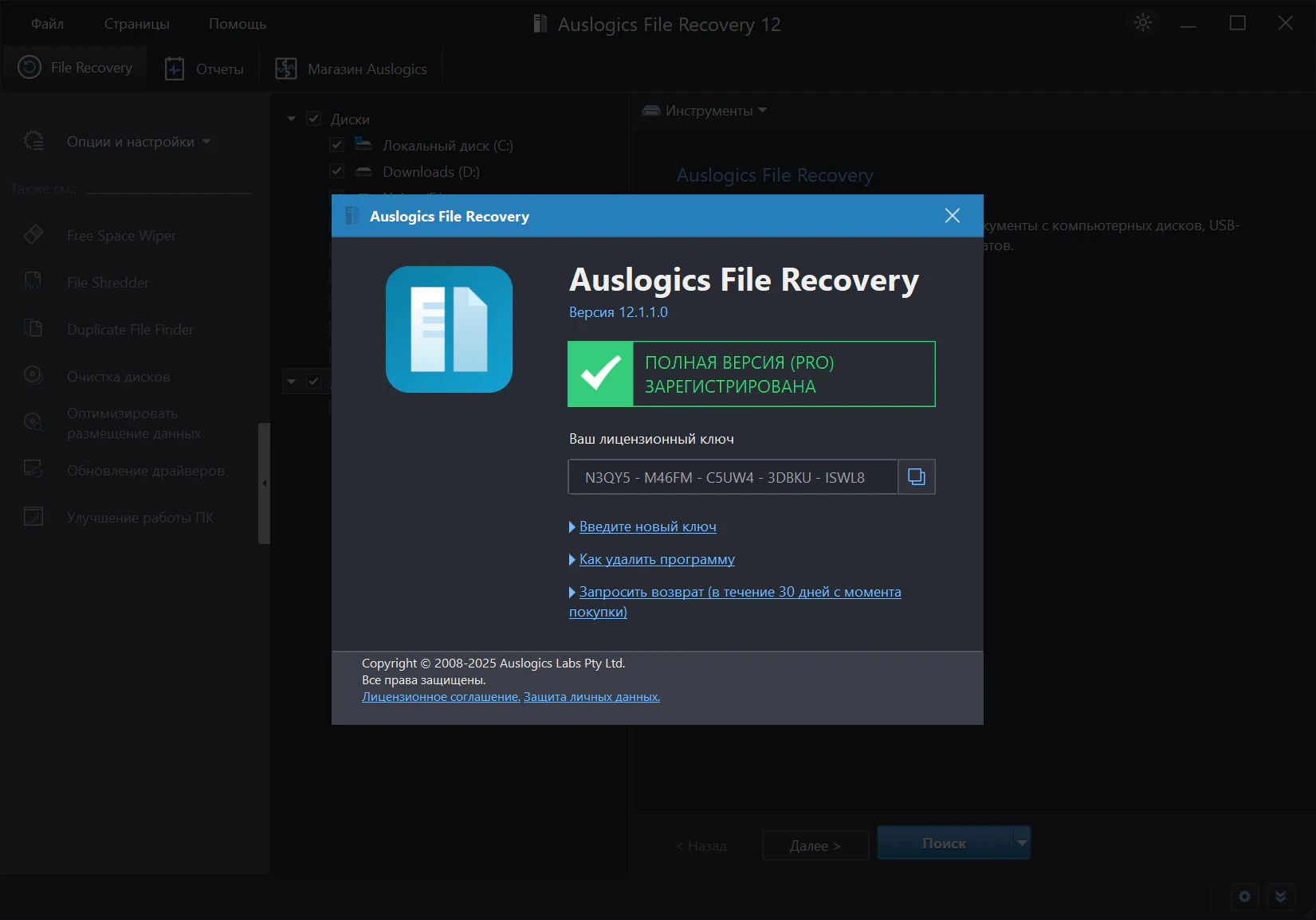 Auslogics File Recovery 12.1.1.0 (2 файла)