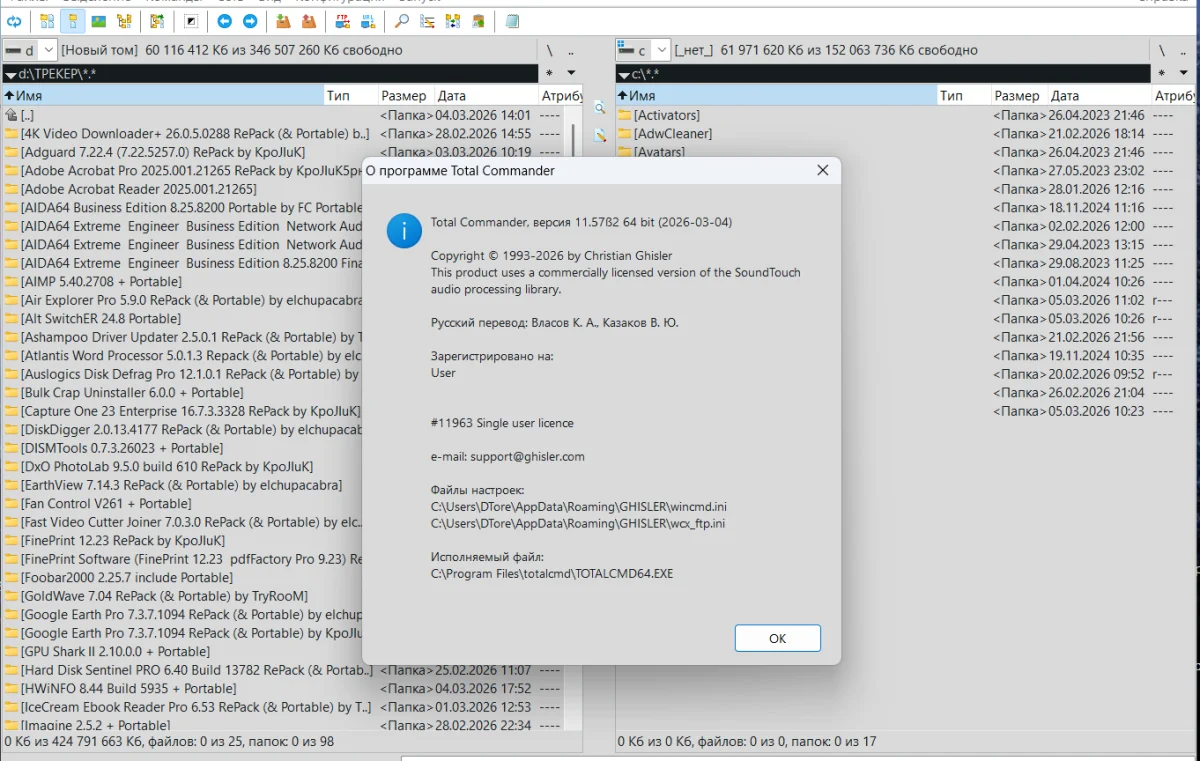 Описание:Total Commander — это один из самых мощных и надёжных файловых менеджеров для Windows с привычным и удобным двухпанельным интерфейсом. Он продолжает концепцию классических «двухоконных» менеджеров, но заметно превосходит их по возможностям и гибкости настройки.