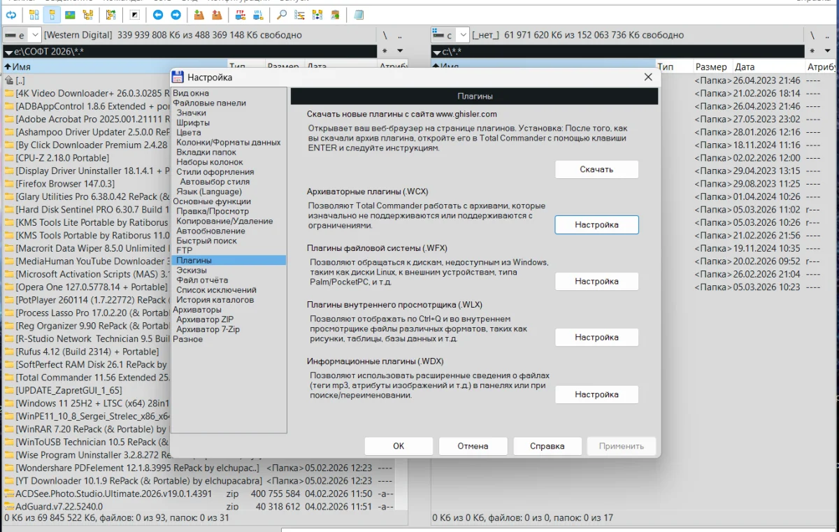 Программа поддерживает плагины, благодаря чему её функционал легко расширяется под свои задачи. В состав Total Commander уже входят встроенные инструменты: