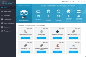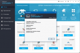 Ashampoo UnInstaller - деинсталлятор программ с прекрасно организованным интерфейсом и алгоритмом работы. Эта утилита отслеживает и регистрирует изменения, которые вносят инсталляционные программы, что позволяет при необходимости корректно удалить ненужную программу. Положительным качеством является то, что данная программа удаляет не только те приложения, что были отслежены ей, но и путем анализа деинсталлирует программы, мониторинг которых не производился. Кроме своей основной функции, программа способна удалять дубликаты и временные файлы, управлять установленными в систему шрифтами.