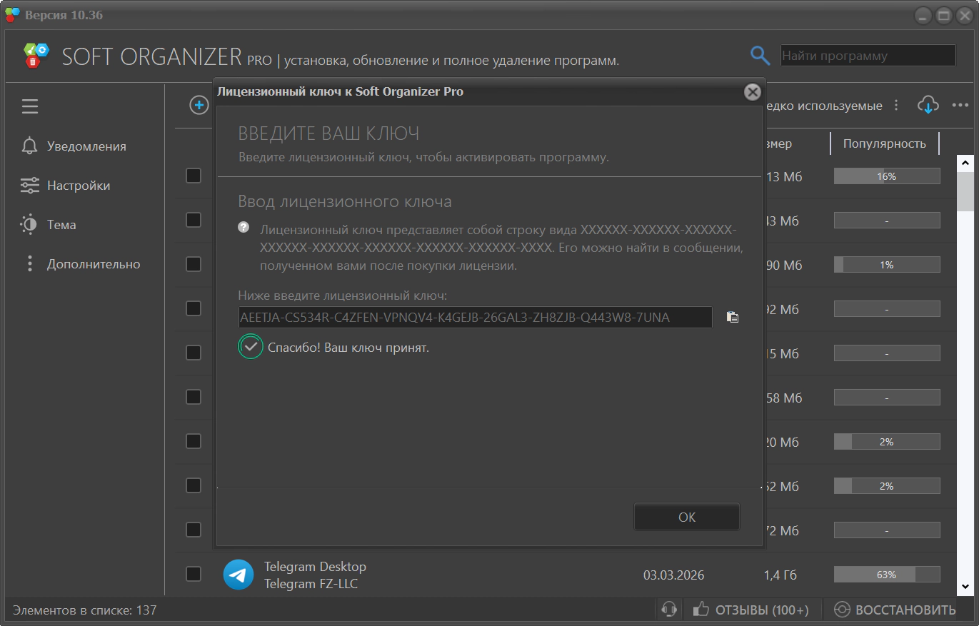 3. При необходимости зарегистрируйте программу ключом из текстового файла key.txt.