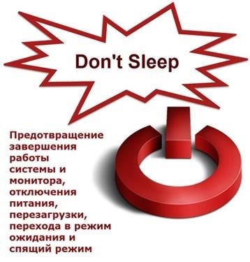 Dont Sleep - бесплатная утилита, которая временно может отключить настройки электропитания. Можно выбрать, что именно отключать - хранитель экрана, режим гибернации, блокировку рабочего стола. Также программа позволяет отсчитывать время, которое предоставляется компьютеру для работы без настроек питания, а после сможет выключить, заблокировать компьютер или отправить его в режим сна.