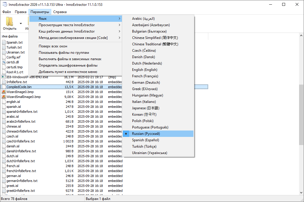 - Извлеченные файлы в папке: InnoExtractor\Documents\InnoExtractor Files