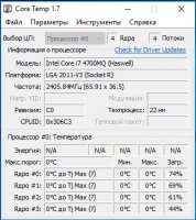 Core Temp - программа для контроля температуры процессора. Core Temp может показывать температуру каждого отдельного ядра в каждом процессоре, имеющемся в системе. С помощью этой утилиты можно в реальном времени наблюдать, как меняется температура ядра процессора в зависимости от нагрузки. Core Temp позволяет записывать изменения температуры процессоров в течение определенного времени с последующей передачей данных в Excel. Программа Core Temp позволяет контролировать температуру сенсора на процессорах Intel Core и Core 2, а также всего семейства AMD K8. Показания более менее приближены к реальным, так как данные считываются с термосенсора, расположенного около самой горячей части внутри ядра процессора.