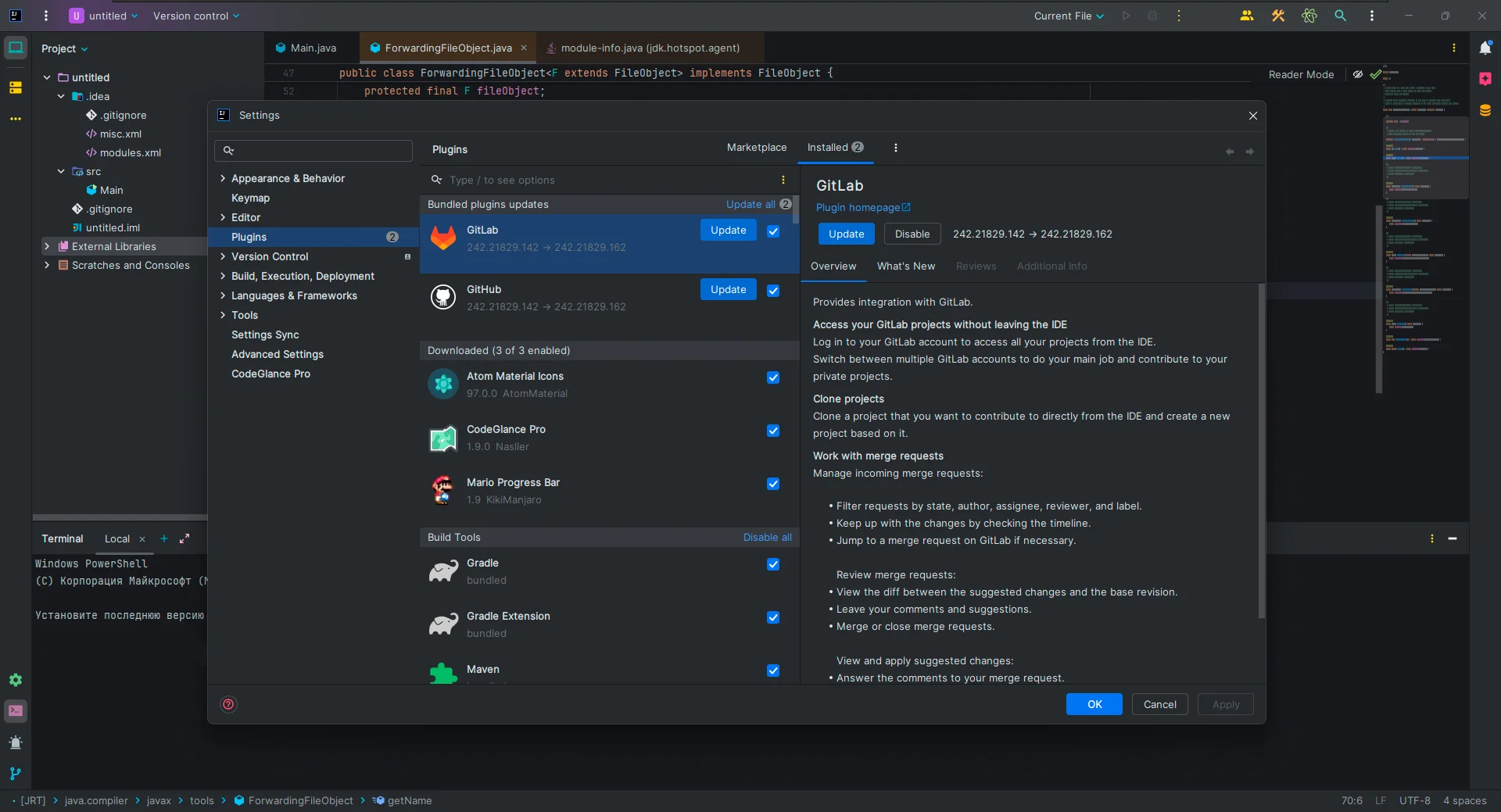 IntelliJ IDEA Ultimate предлагает инструменты для работы с Git, облегчающие управление версиями и совместную работу в команде, а также обеспечивает анализ качества кода и проверку совместимости с API. Для оптимизации процесса отладки имеется поддержка всех популярных платформ, включая JVM, .NET, jаvascript и многое другое.