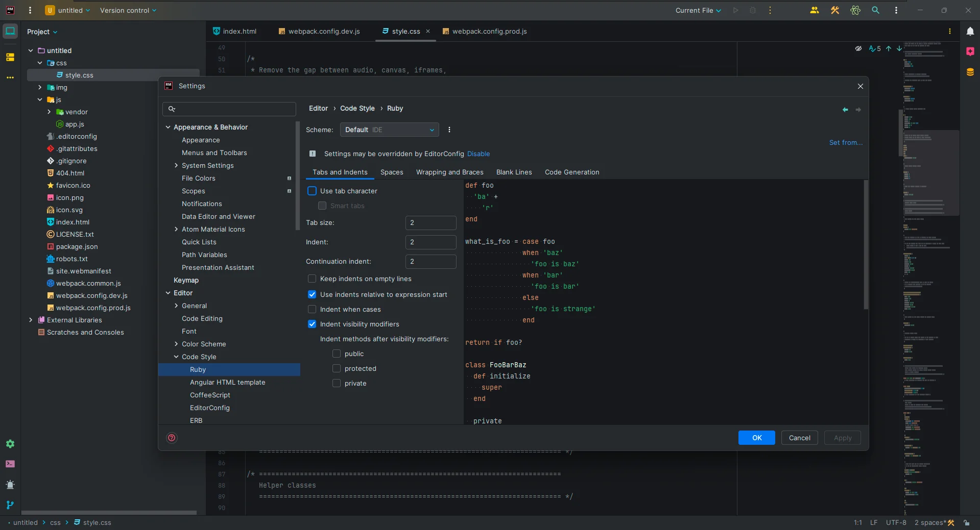 Кроме того, RubyMine позволяет полностью настроить рабочую среду, отвечающую требованиям разработчика, начиная с цветовой схемы, расположения окон, сочетания клавиш быстрого доступа и заканчивая интеграцией с системой контроля версий, базой данных, или настройкой удаленного сервера.