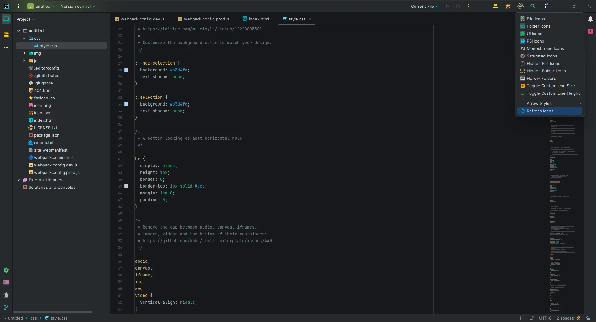 • WebStorm обеспечивает автоматическое завершение стилей, ссылок, атрибутов и других элементов кода, используя возможности кода HTML/XHTML и XML.