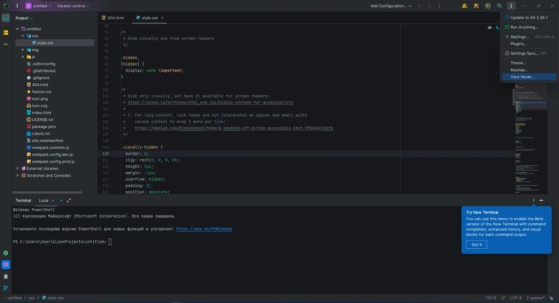 - Встроенный терминал.